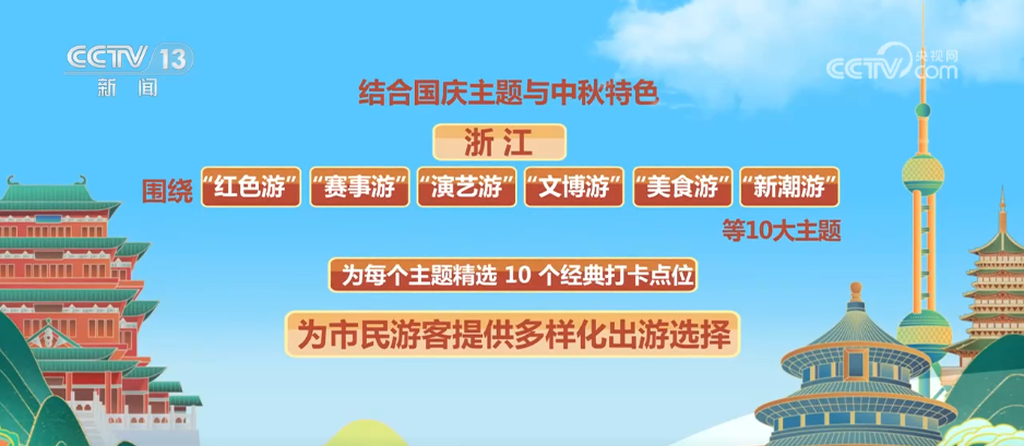 记者从浙江省文化广电和旅游厅获悉,根据假期前预测,浙江245家4A及以上景区整个国庆中秋假期的到访人数将超2800万人次。结合国庆主题与中秋特色,浙江围绕“红色游”“赛事游”“演艺游”“文博游”“美食游”“新潮游”等10大主题,为每个主题精选10个经典打卡点位,为市民游客提供多样化出游选择。
